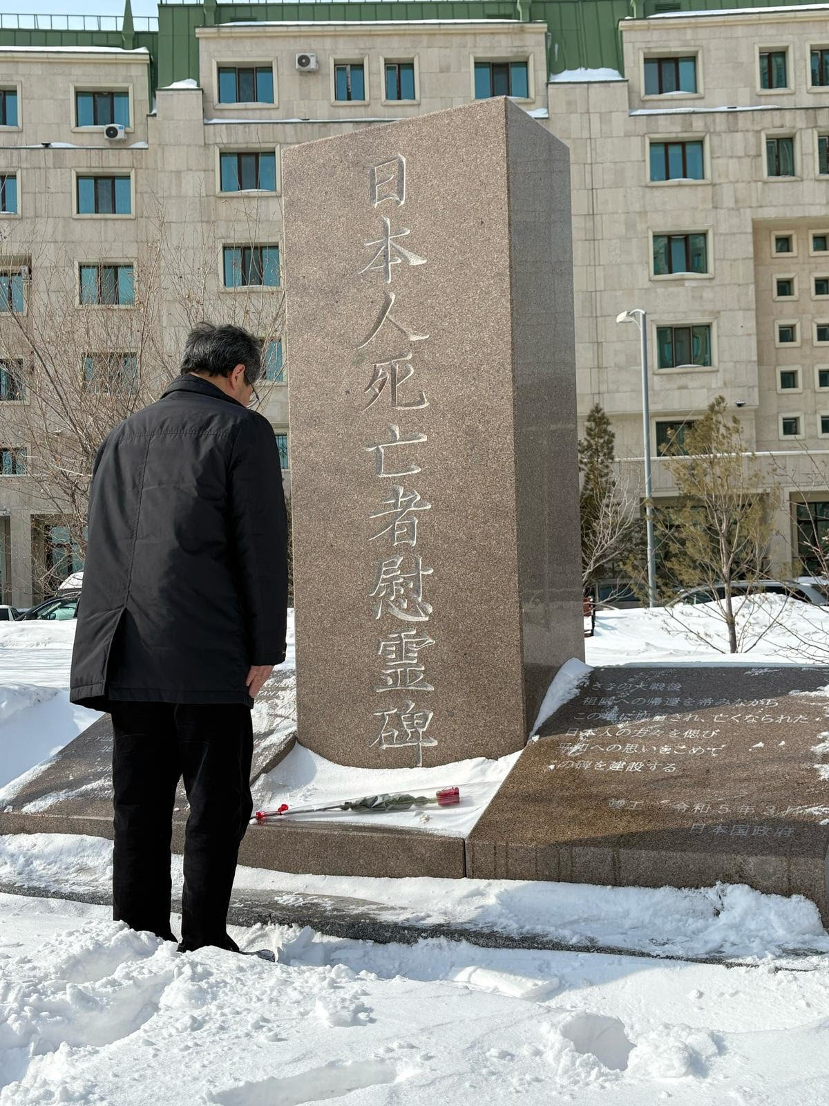 During their stay, they also visited and laid flowers at the cenotaph commemorating the Japanese detainees who died in Kazakhstan after having been forcibly transferred there by the Soviet Union following World War II.