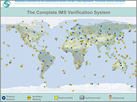 A large image in a new window is opened on click. The IMS comprises those monitoring stations and the line of communication and is supported by the International Data Center (IDC) in Vienna. The signatories exchange the data internationally and have access authority to all data transmitted to the IDC.