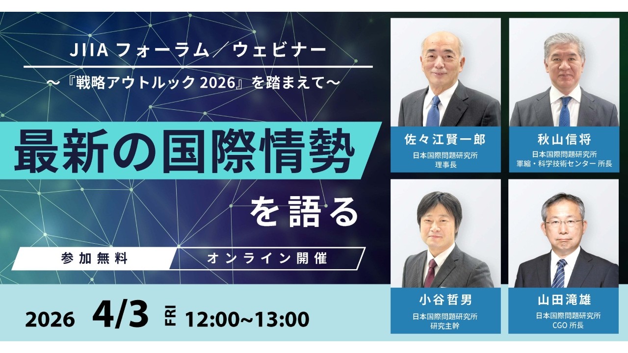 日本国際問題研究所(JIIA)は、4月3日(金)、最新の国際情勢をテーマとする公開イベントを開催いたしました。