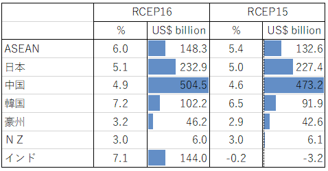 | 表2 RCEPによる経済効果(実質GDPの変化) |