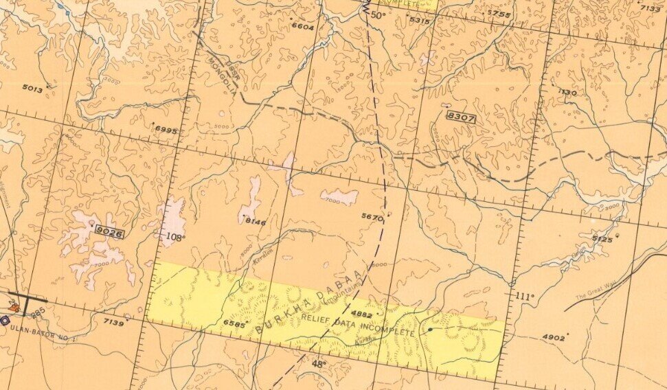 1954年9月(モンゴルと中国とソ連の国境)(米国国立公文書館所蔵)