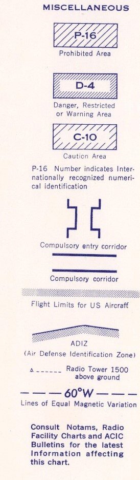 次に、2点目の「鬱陵島と独島の間の短い点線について「総合的に見ると、右側は日本であり、左側は韓国という簡略な表記とみられる」、「方向を区分したもので国境線ではない」とする主張については、該当の点線が「方向を区分したもの」であるとの根拠が提示されていない。1点目同様、根拠のない主張は単なる憶測に過ぎない。地図学の観点からは、一般的に、地図は、地図投影・記号・縮尺など地図図式が定められており、地図図式は多くの場合、地図上で凡例によって示されている。1954年の航空図USAF JET NAVIGATION CHART,JN-25,YELLOW SEA,1st EDITIONでは、凡例は地図の左端に記されている。地図左端の中央部にあるAERONAUTICAL LEGEND(航空の凡例)【図6】のうち、MISCELLANEOUS(その他(の凡例))には、'ADIZ(Air Defense Identification Zone)'とあり【図7】、地図左端下部にあるLEGEND(凡例)には、すでに別紙1、別紙4で記したように、'Division of Insular Sovereignty(land areas only)'(島嶼の主権の境界線(陸域のみ))【図8】すなわち、島嶼の国境線を示しており、いずれも地図上では凡例の線と、鬱陵島と竹島付近の線は記載が一致している。