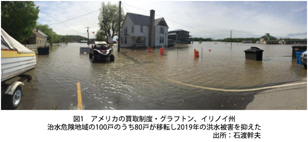 ではバイデン政権がインフラ投資の法案化を進めており、その中には500億ドル(5.5兆円)の防災対策が含まれている1。これまでも、堤防などの施設整備に加えて、洪水保険、洪水危険地での住宅買取り(Buy-out)(図1)、移転事業(Managed Retreat)といった先進的な取り組みを進め、洪水リスクを減らしてきている。