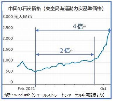 グラフのとおり、石炭価格は、既に9月までに今年の底値の2倍へとじわじわと値上がりしていたが、9月以降は更に2倍値上がりした。各地方で一斉に強制的なエネルギー消費抑制措置がとられたのだから、発電用炭はダブついて値下がりしてもおかしくないのに、なぜ逆に値上がりしたのか。