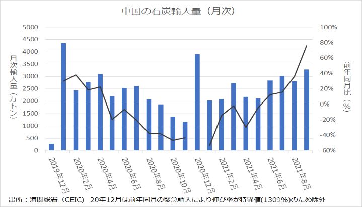 注:中国は電力市場化改革を進めており、発改委によると、市場取引を経由している石炭火力発電量は2020年に70%を超えており、今後は石炭火力発電の全量を市場取引経由とするという。