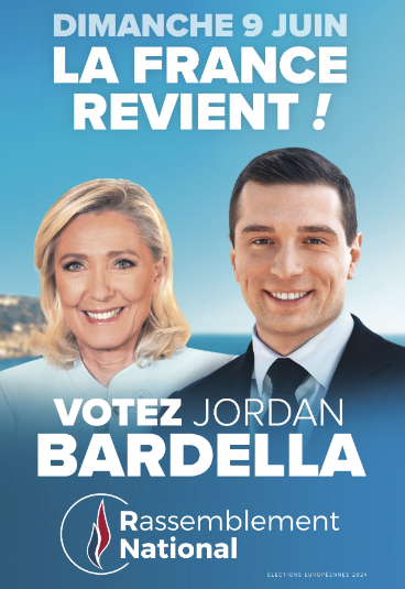 こうしたマクロン政治への反発の高まりは、4月下旬ごろより国民連合支持に結びついた。その背後には新党首バルデラ(Jordan Bardella)人気も影響している。