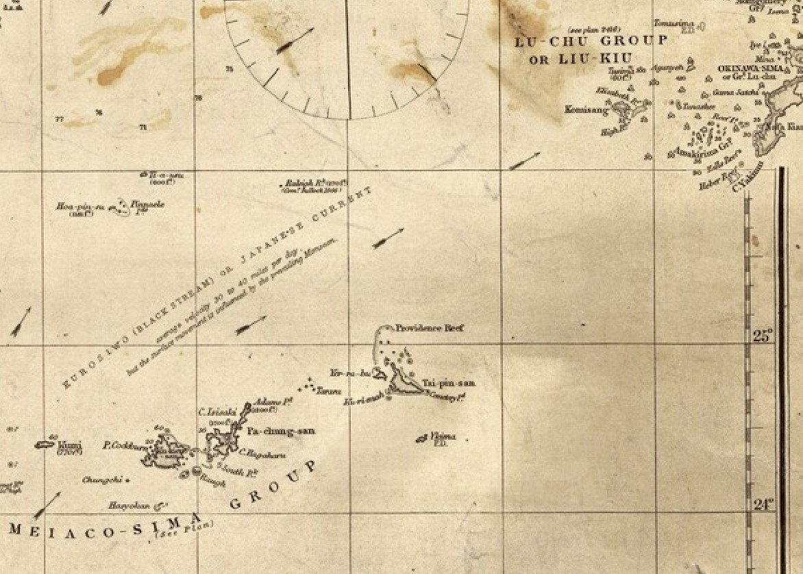 率直な感想として、釣魚島図の南西諸島部分の記載は、近代以降の日本的な名称が採用されている印象を受ける一方で、中央研究院図の記載は「琉球」に対する当時の欧米諸国の認識が色濃く反映されているようにうかがえる。