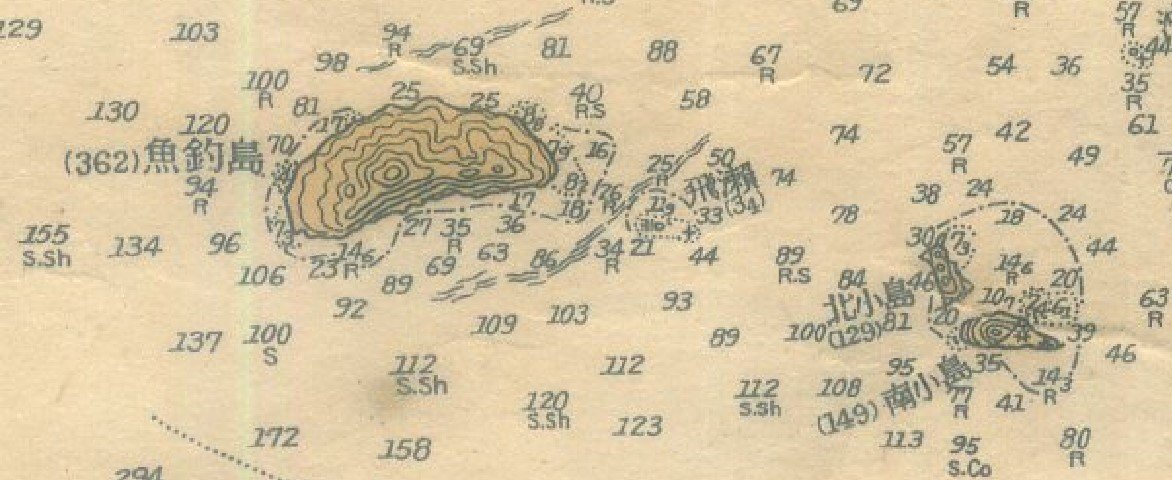 両図共に英国海軍水路部が刊行した1262号図である(釣魚島図は推定だが)にもかかわらず、その表記内容には見過ごせない相違点が、大きいものだけで2点ほどある。