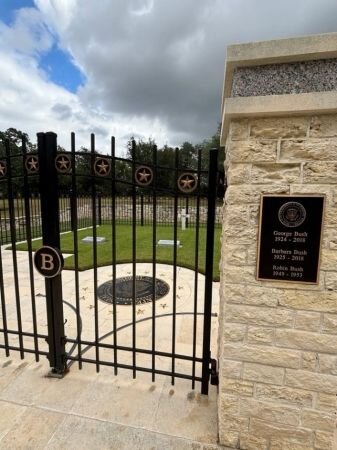 ここですでに他の大統領図書館を利用した方にはお分かりだと思うが、本図書館では他と異なり、トイレと待機室での食事・水分補給以外、閲覧室・建物の外に出るにはすべてスタッフの付き添いが必須だということである。持ち込んだ軽食を閲覧室横の待機室でとることはできるが、カフェテリア「Daisy's Café」は、メイン建物に隣接している建物(ブッシュが利用したマリーン・ワンや機関車が展示されているパビリオン)内にあり、いったん外出しなければならない。そのため、閲覧室から出口まで・入口から閲覧室までスタッフの付き添いが必要で、その都度願い出るのは億劫である(ただしスタッフは決して嫌な顔をすることなく、とても親切だった)。そのため閲覧室で作業している誰かが外のカフェテリアでランチを取る際には「他に誰か一緒に出る人」と声をかけられることがあった。気分転換のために、気軽にふらっと屋外に出て、コーヒーを飲んだり、散歩したりすることできないのはややストレスである。それでも図書館周辺には、整備されたキャンパスのなかに散歩コースもあり、5分程度歩けばブッシュ大統領夫妻の墓地もあるので、やはり時折、建物の外に出てリフレッシュするのが良いだろう。また同じ建物にあるブッシュ大統領ミュージアムで同大統領の「功績」を讃える展示を見て回って、研究のインスピレーションを得るのも良い。なお同ミュージアムは通常入場料(12ドル)がかかるが、閲覧室を利用していたためか、アーキビストにお願いすれば無料で入場できた。