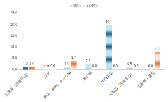 1 UNCTADの非関税障壁のデータベース(TRAIN)に基づき、Kee and Nicita (2017)の推計式により非関税障壁の従価税換算(AVE)を推計している。「Data Description」最終アクセス2025年4月24日<https://datacatalogfiles.worldbank.org/ddh-published/0040437/1/DR0050406/data_description_forweb.docx>
